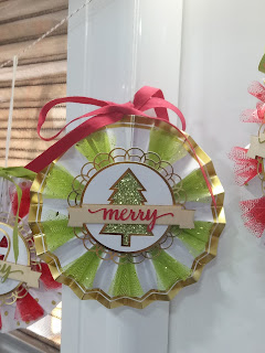 Using the Stamparatus to make a stamped wreath.Doilies make a great background for a folded designer series paper Christmas tree.